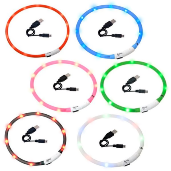 transparent (Das Halsband kann in 4 verschiedenen Positionen leuchten, durchgehendes blaues, rotes oder grünes Licht und ein Modi mit diesen 3 Farben.)