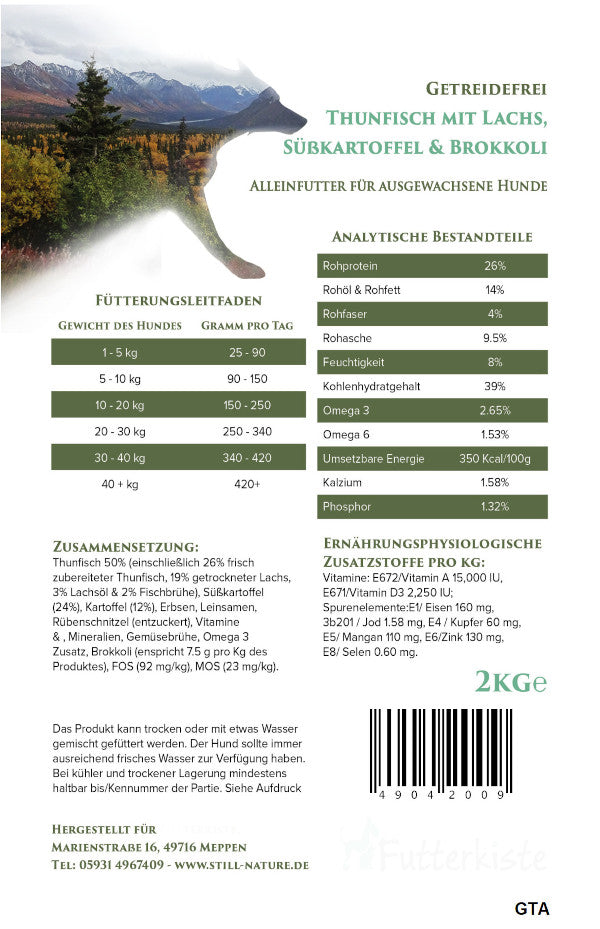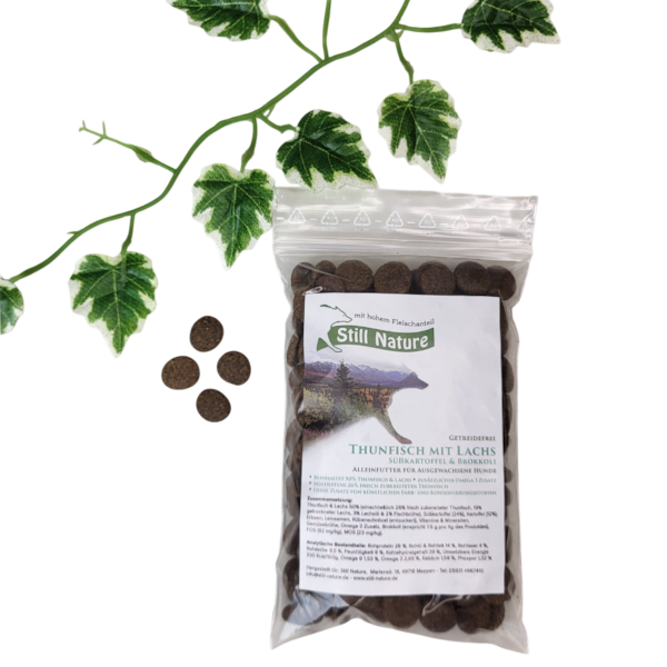 Für den Menschen ist der Hund weitaus mehr als lediglich ein Haustier. Vielmehr handelt es sich um einen treuen Gefährten, der entsprechend versorgt werden möchte. Die Basis hierfür bildet eine hochwertige Ernährung. Mit Thunfisch und Lachs mit Süßkartoffeln und Brokkoli liegst Du immer richtig. Das schmeckt jedem Hund und enthält zahlreiche köstliche Komponenten sowie hervorragende Inhaltsstoffe. Diese tragen zum Wohlbefinden und zur Gesundheit Deines Vierbeiners bei. Der Hund bleibt fit, vital und erfreut sich eines langen Lebens.